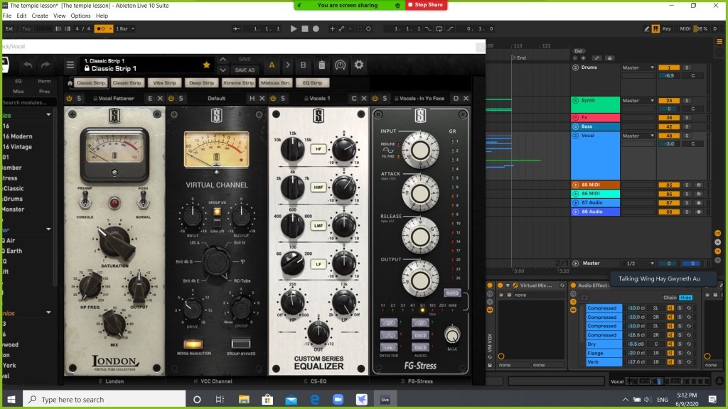 Another thing I’ve learnt from this project is we can use certain takes that cannot be put in the foreground in the background. For instance, the featured artist did a very metal monologue that we thought might not work. But Daniel compressed and put lots of reverb into it and it became this super cool ad-lib! (0:58)